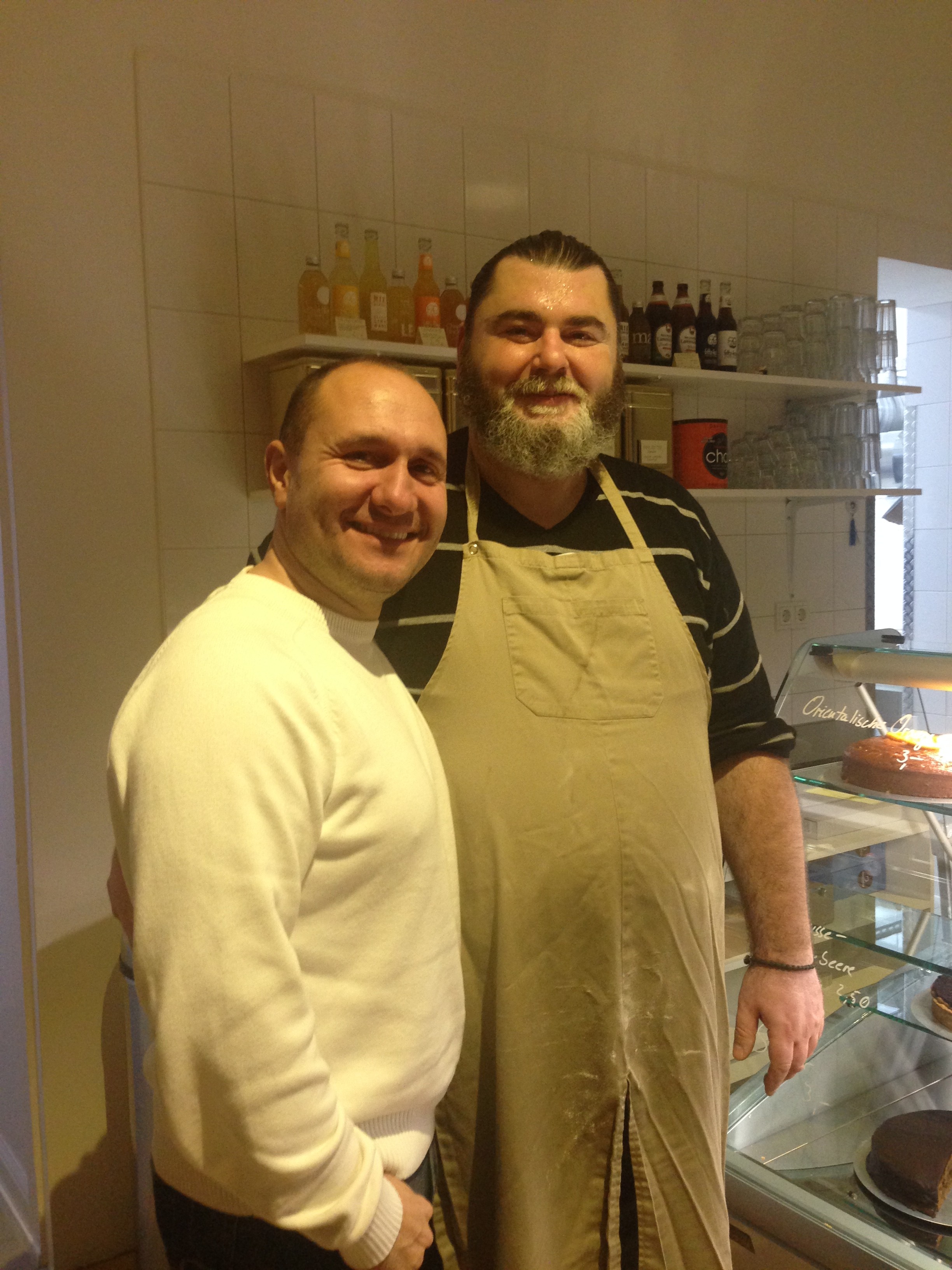 Br. Kenan Yilmaz, Victoria Loge Berlin, mit seinem ehemaligen Kampfkunstschüler Tony Bravko, den er zum Sprung in die Selbstständigkeit als Konditor ermuntert hat.
